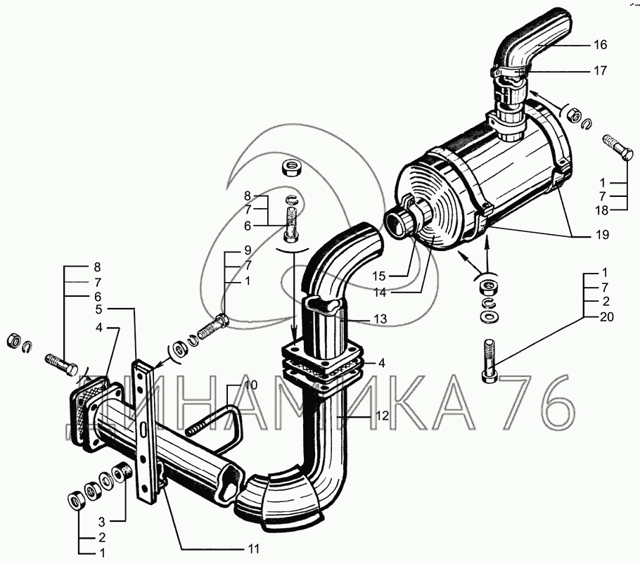 Перечень комплектующих от Система выпуска отработавших газов на КрАЗ-64372, 6133М6