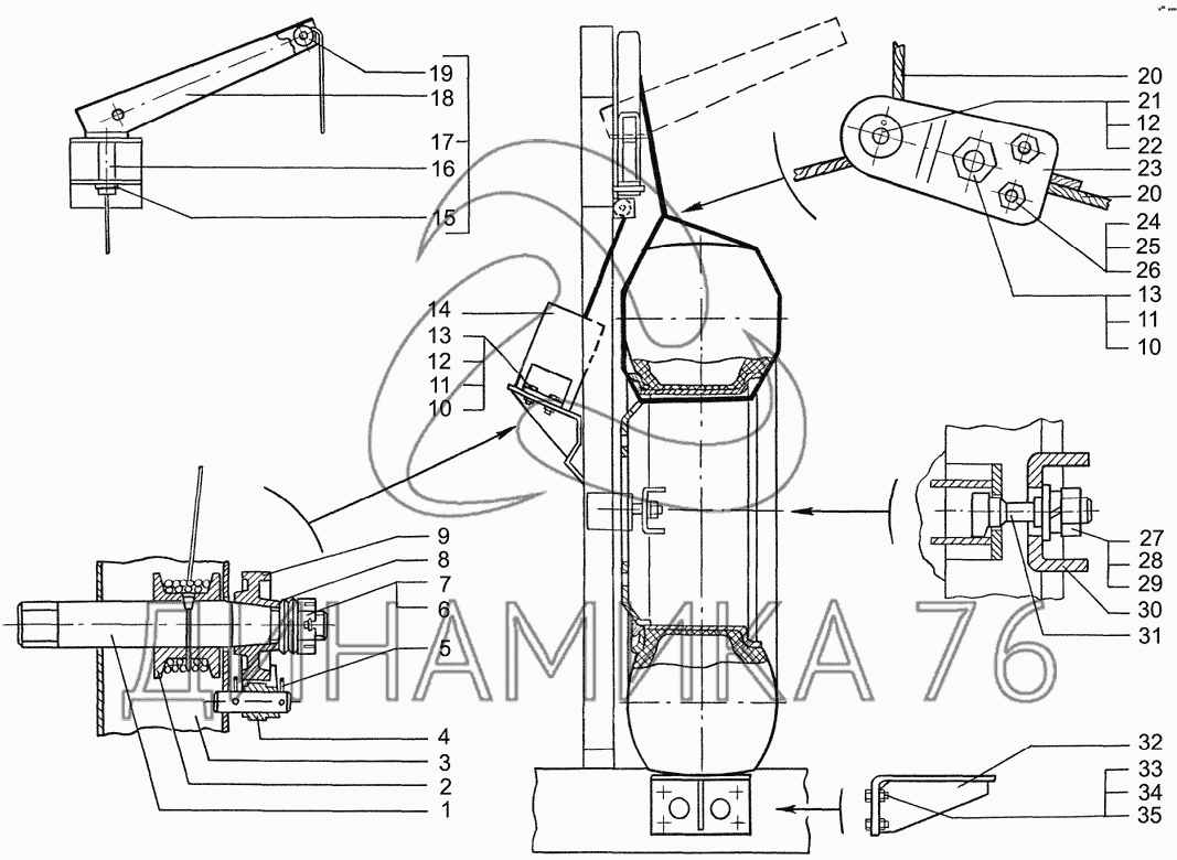 Схемы запчастей предназначены для справочных целей! Мы продаем не все запчасти от Установка запасного колеса на КрАЗ-64372, 6133М6, представленные в этом списке.