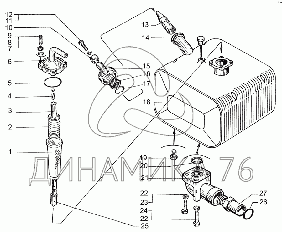 Перечень комплектующих от Бак масляный опрокидывающего механизма на КрАЗ-64431-02