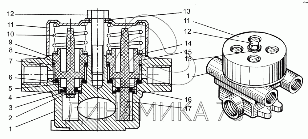 Схемы запчастей предназначены для справочных целей! Мы продаем не все запчасти от Клапан защитный четырехконтурный на КрАЗ-64431-02, представленные в этом списке.