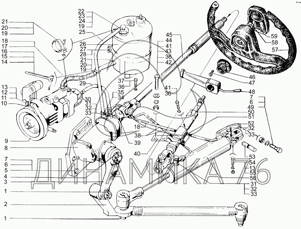 Перечень комплектующих от Управление рулевое на КрАЗ-64431-02