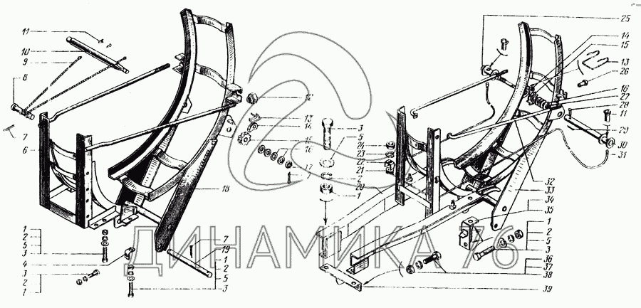 Схемы запчастей предназначены для справочных целей! Мы продаем не все запчасти от Держатель запасного колеса на КрАЗ-6443, представленные в этом списке.