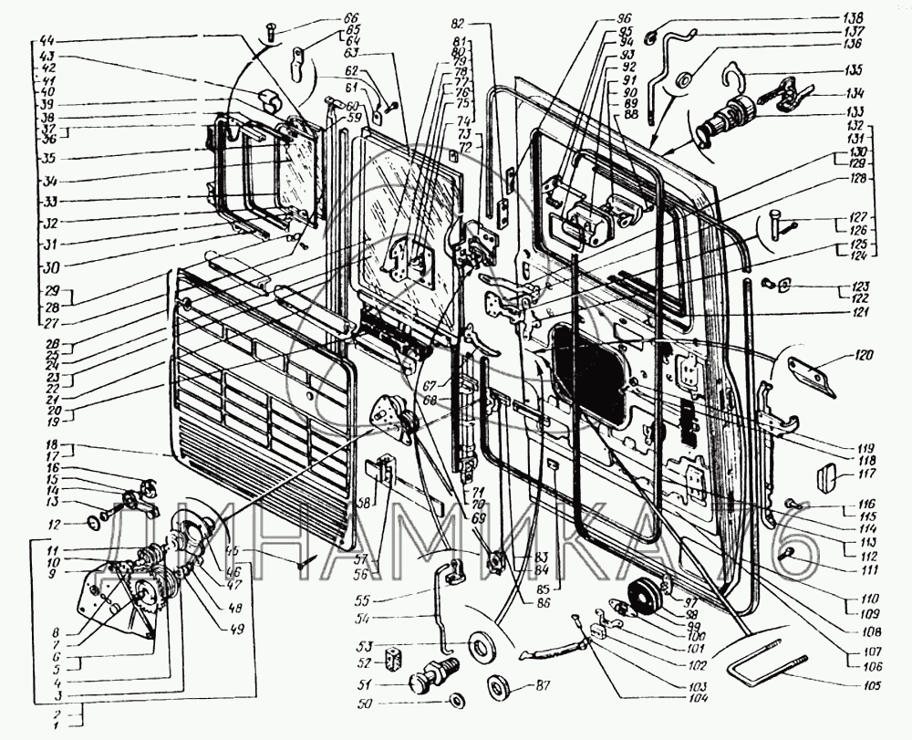 Схемы запчастей предназначены для справочных целей! Мы продаем не все запчасти от Дверь кабины на КрАЗ-6443, представленные в этом списке.