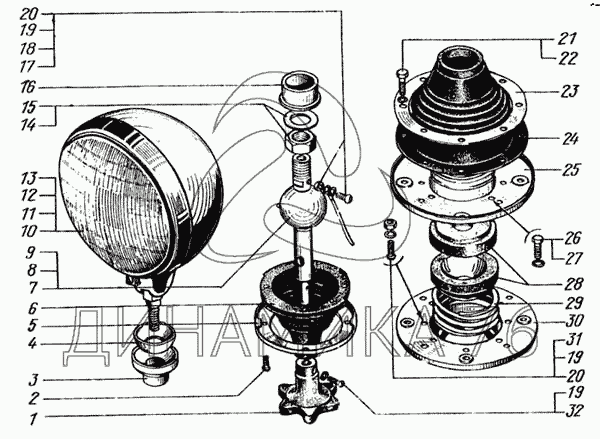 Перечень комплектующих от Фара поворотная на КрАЗ-6443