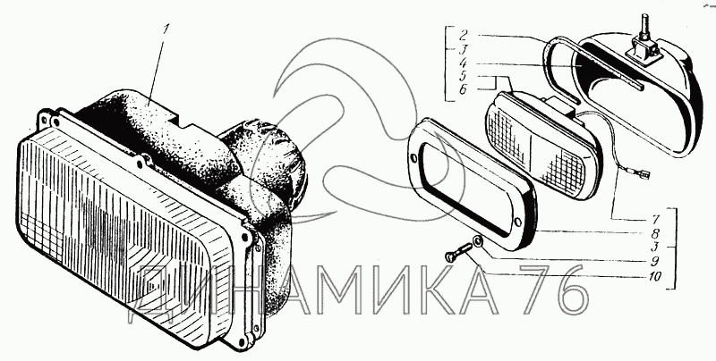 Перечень комплектующих от Фары на КрАЗ-6443