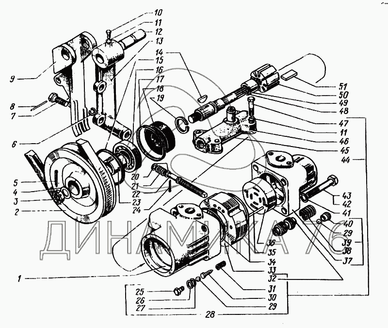 Насос с коллектором и шкивом в сборе