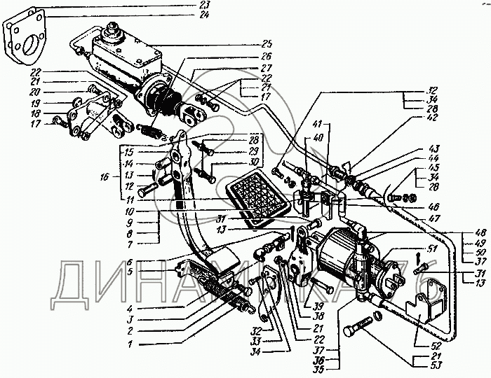Схемы запчастей предназначены для справочных целей! Мы продаем не все запчасти от Привод управления сцеплением на КрАЗ-6443, представленные в этом списке.