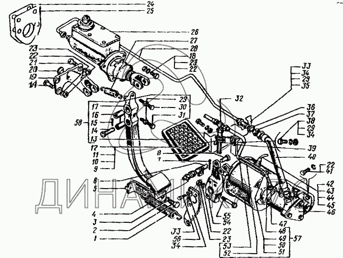 Схемы запчастей предназначены для справочных целей! Мы продаем не все запчасти от Установка привода сцепления на КрАЗ-6443, представленные в этом списке.