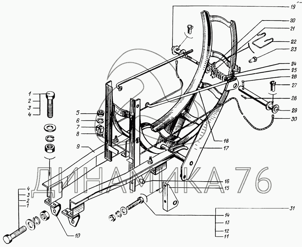 Перечень комплектующих от Держатель запасного колеса на КрАЗ-65055