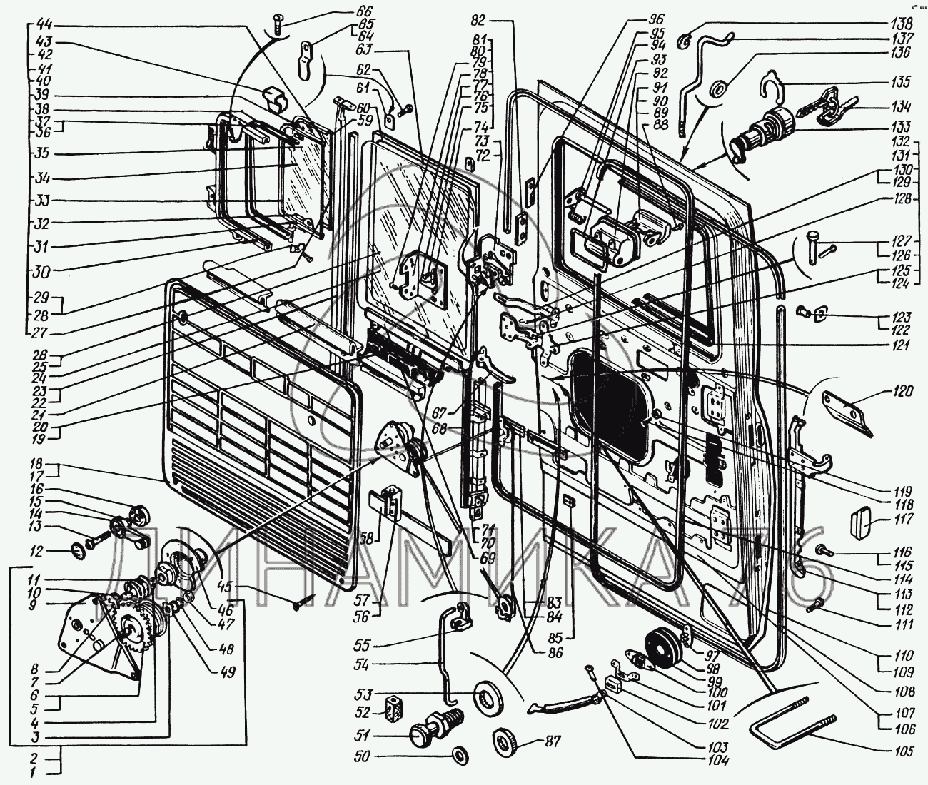 Схемы запчастей предназначены для справочных целей! Мы продаем не все запчасти от Дверь кабины на КрАЗ-65055, представленные в этом списке.