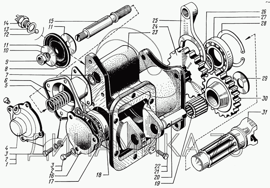 Схемы запчастей предназначены для справочных целей! Мы продаем не все запчасти от Коробка отбора мощности на КрАЗ-65055, представленные в этом списке.