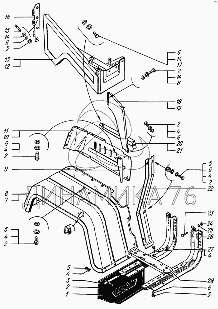 Перечень комплектующих от Крыло переднее и подножки на КрАЗ-65055
