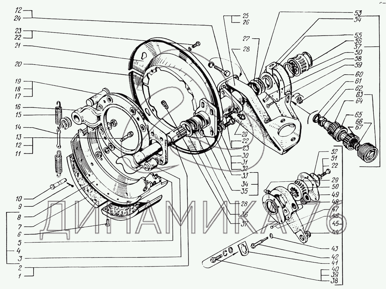 Схемы запчастей предназначены для справочных целей! Мы продаем не все запчасти от Механизмы тормозные задние на КрАЗ-65055, представленные в этом списке.