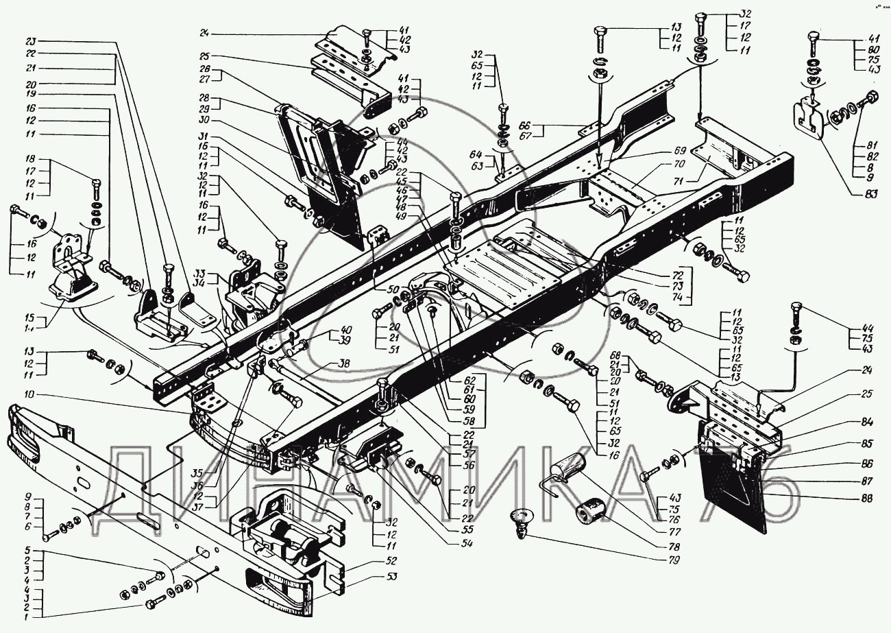 Схемы запчастей предназначены для справочных целей! Мы продаем не все запчасти от Рама на КрАЗ-65055, представленные в этом списке.