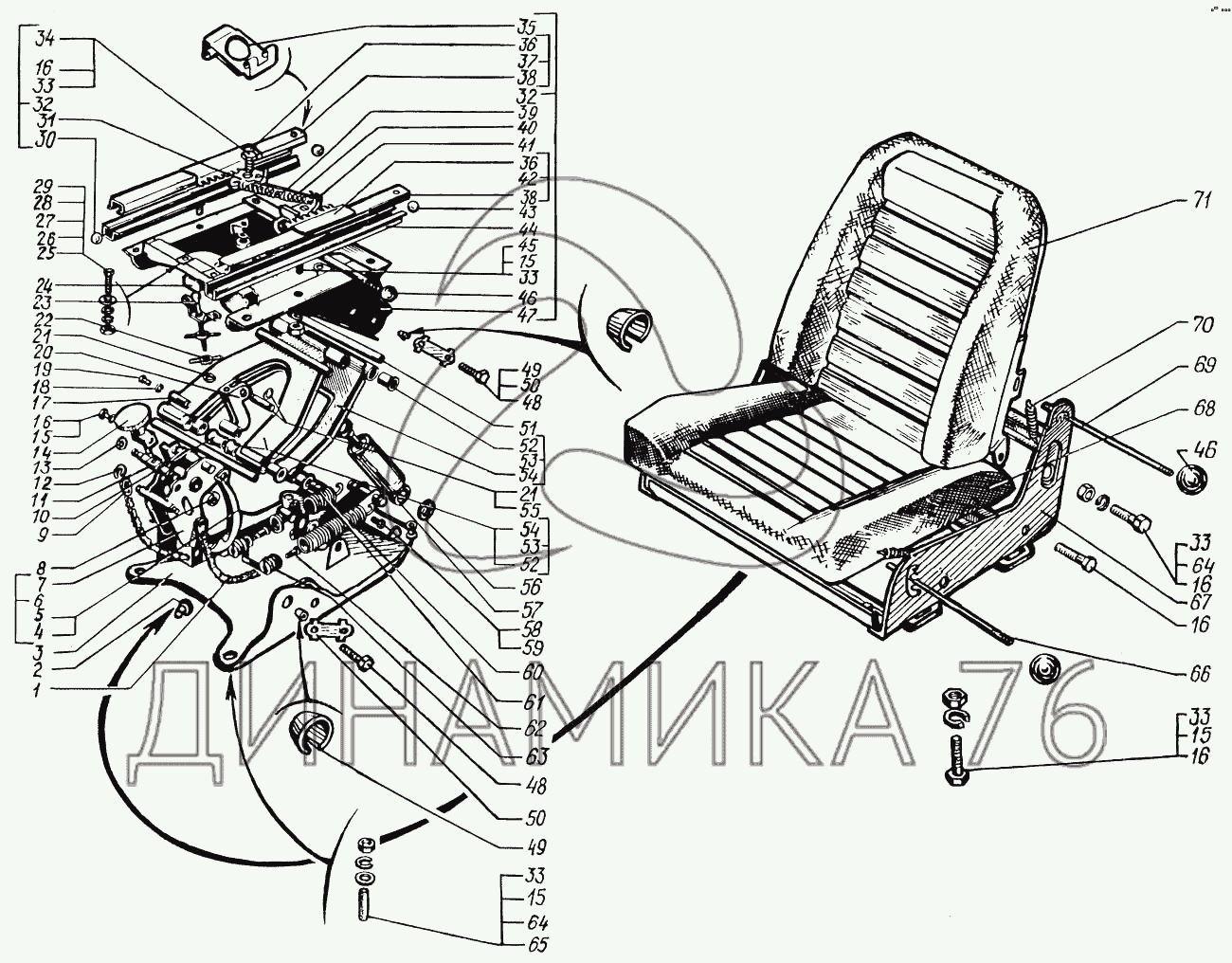 Схемы запчастей предназначены для справочных целей! Мы продаем не все запчасти от Сиденье водителя на КрАЗ-65055, представленные в этом списке.