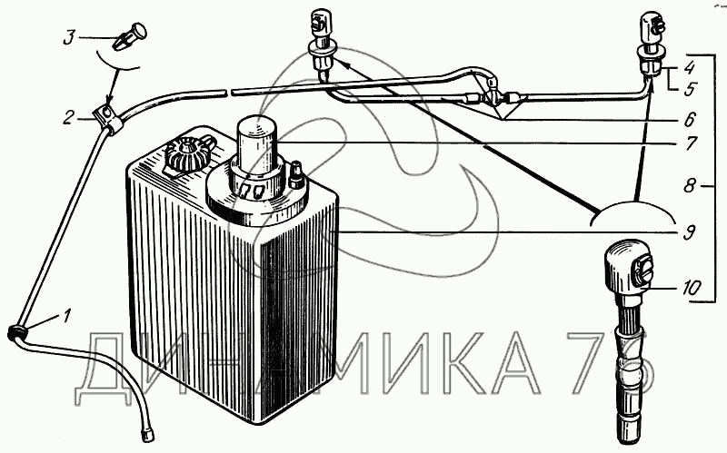 Перечень комплектующих от Стеклоомыватель на КрАЗ-65055