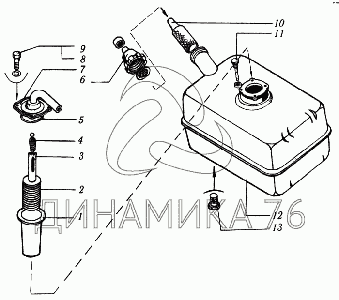 Перечень комплектующих от Бак масляный одноцилиндрового опрокидывающего механизма на КрАЗ-6510