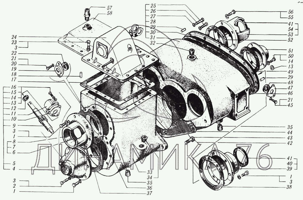 Перечень комплектующих от Картеры коробки раздаточной на КрАЗ-6510