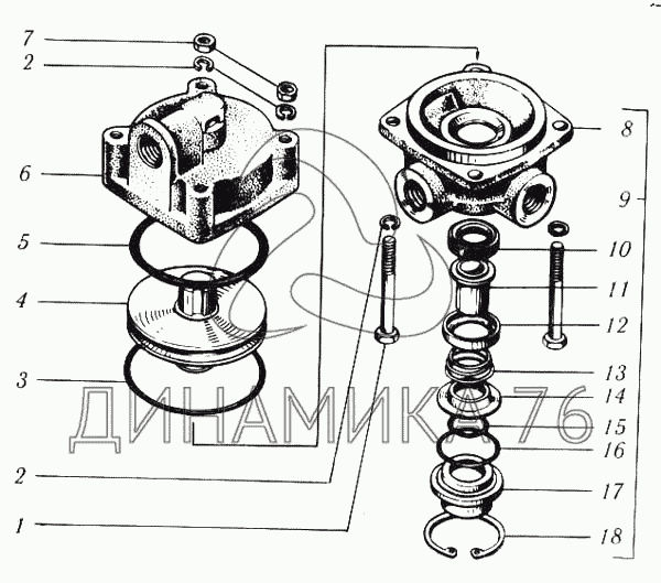 Перечень комплектующих от Клапан ускорительный на КрАЗ-6510