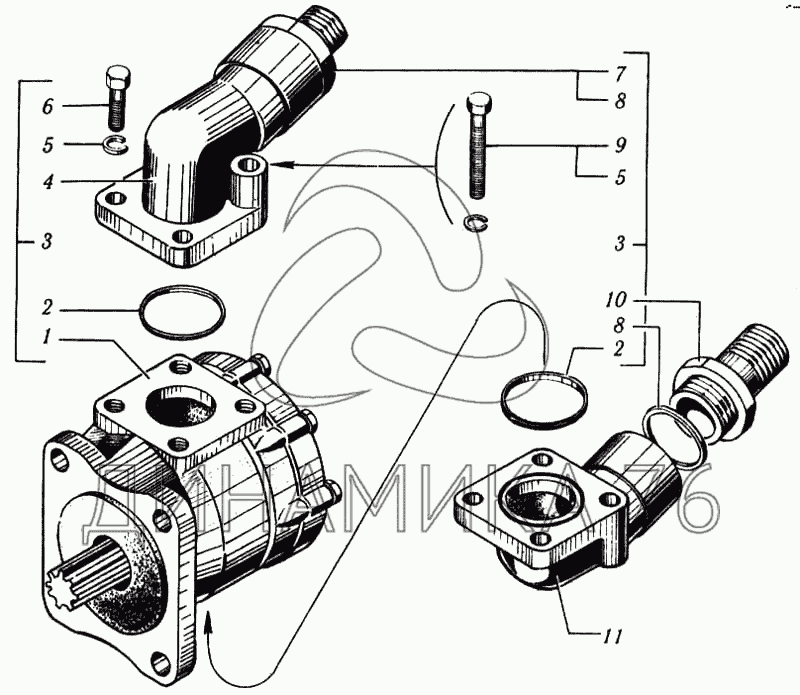 Перечень комплектующих от Насос одноцилиндрового опрокидывающего механизма на КрАЗ-6510