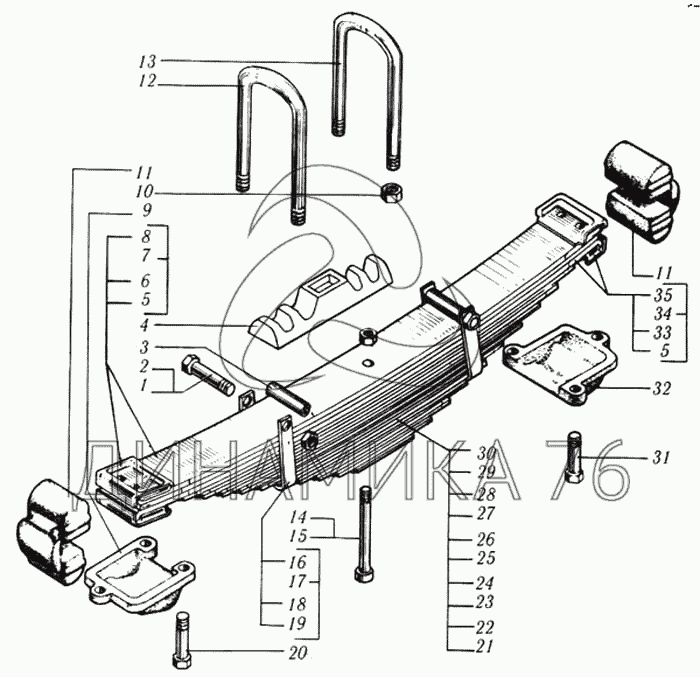 Перечень комплектующих от Рессоры передние на КрАЗ-6510