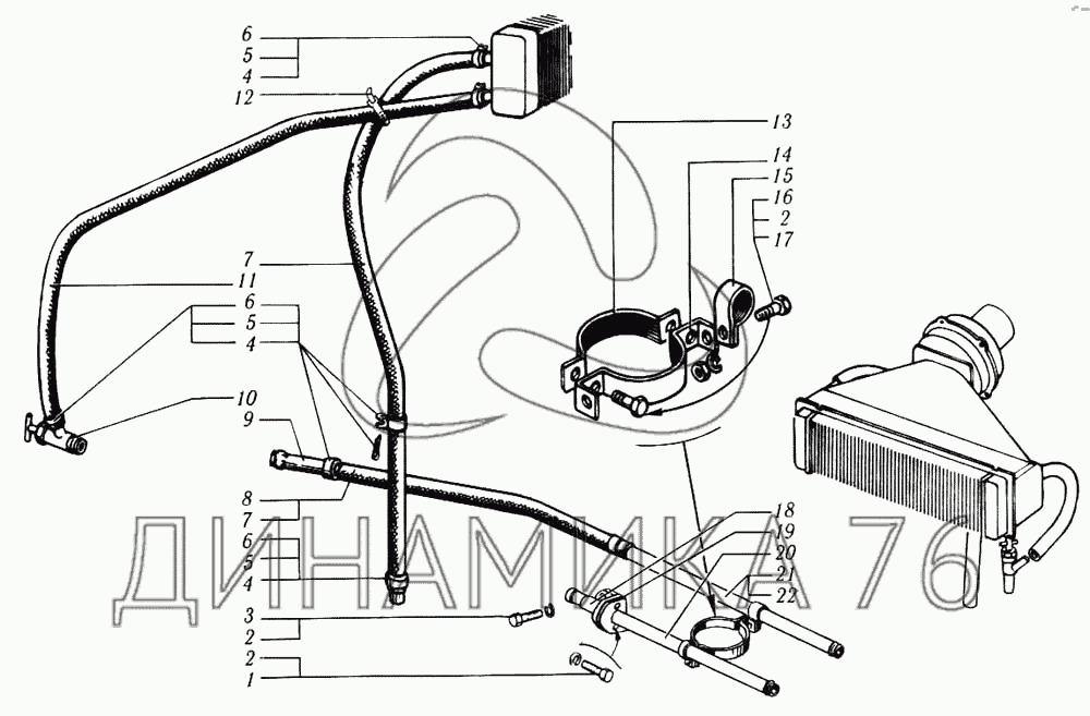 Перечень комплектующих от Трубопроводы системы отопления кабины на КрАЗ-6510
