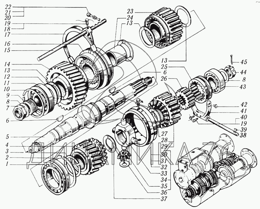 Вал промежуточный и шестерни — КрАЗ-6510: