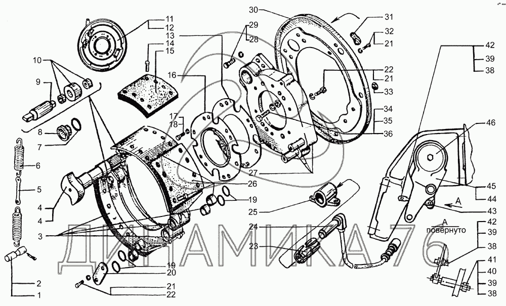 Перечень комплектующих от Механизм тормозной переднего колеса на КрАЗ-7133H4