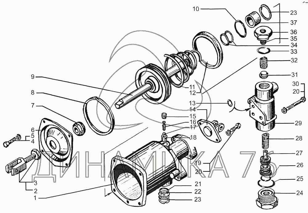 Схемы запчастей предназначены для справочных целей! Мы продаем не все запчасти от Пневмогидроусилитель сцепления на КрАЗ-7133H4, представленные в этом списке.