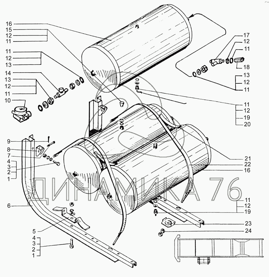 Перечень комплектующих от Ресиверы на КрАЗ-7133H4