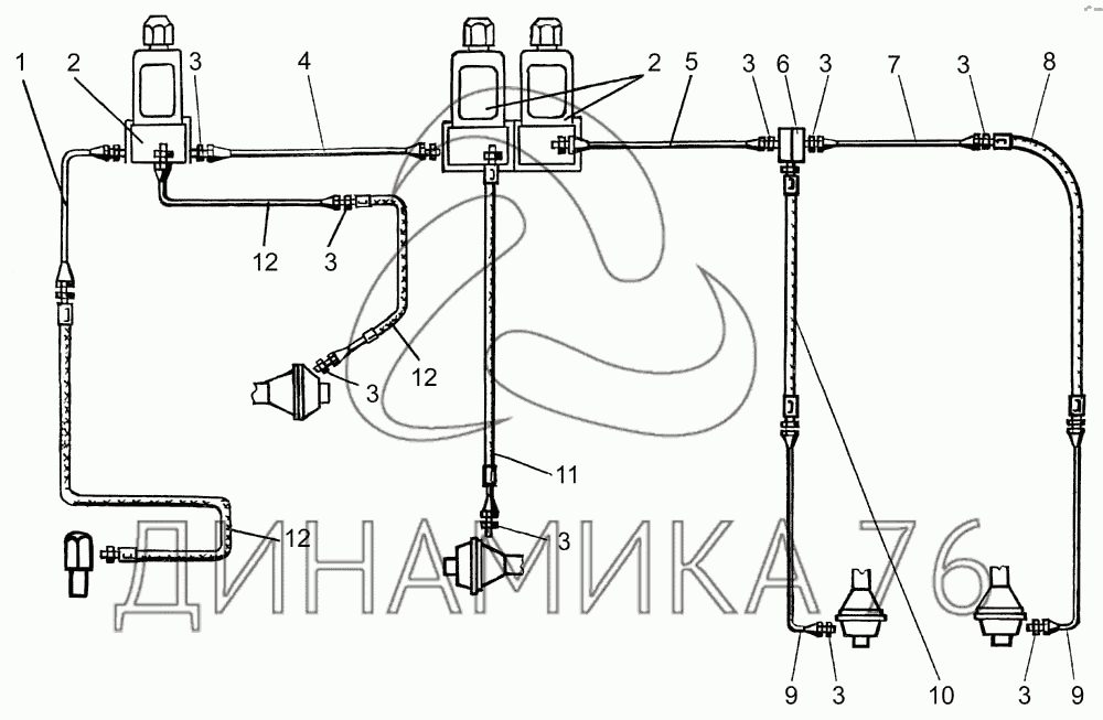 Перечень комплектующих от Воздухопровод блокировки дифференциалов мостов на КрАЗ-7133H4