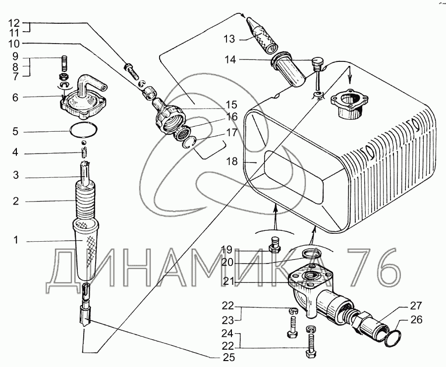 Перечень комплектующих от Бак масляный опрокидывающего механизма на КрАЗ-7133С4