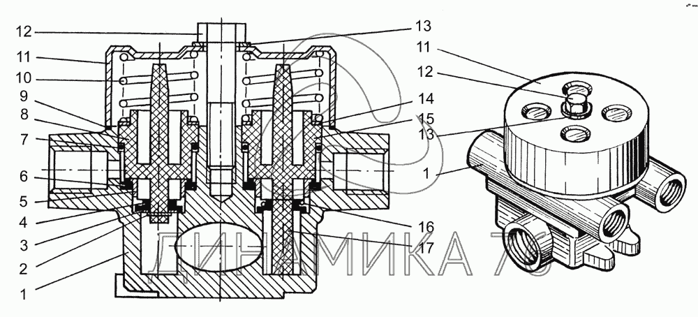Схемы запчастей предназначены для справочных целей! Мы продаем не все запчасти от Клапан защитный четырехконтурный на КрАЗ-7133С4, представленные в этом списке.