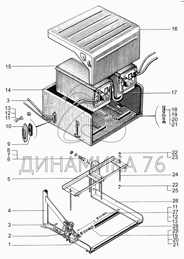 Схемы запчастей предназначены для справочных целей! Мы продаем не все запчасти от Установка аккумуляторных батарей на КрАЗ-7133С4, представленные в этом списке.
