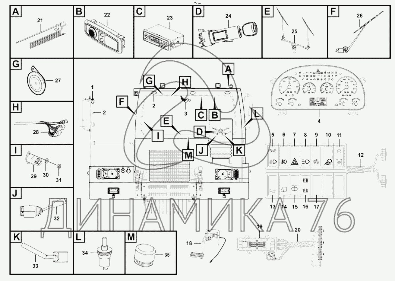 Перечень комплектующих от Cab electrical system на MT76A