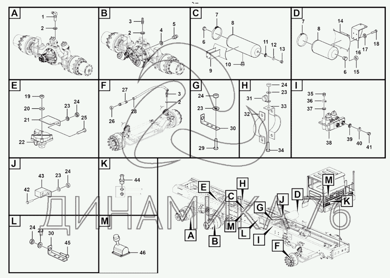 Перечень комплектующих от Parking brake assembly на MT76A