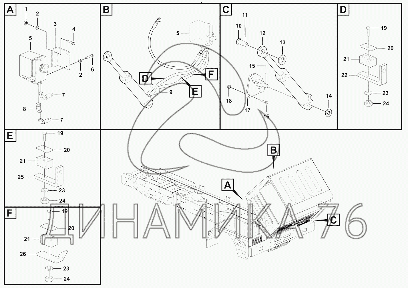 Перечень комплектующих от Cab fliping hydraulic assembly на MT86H