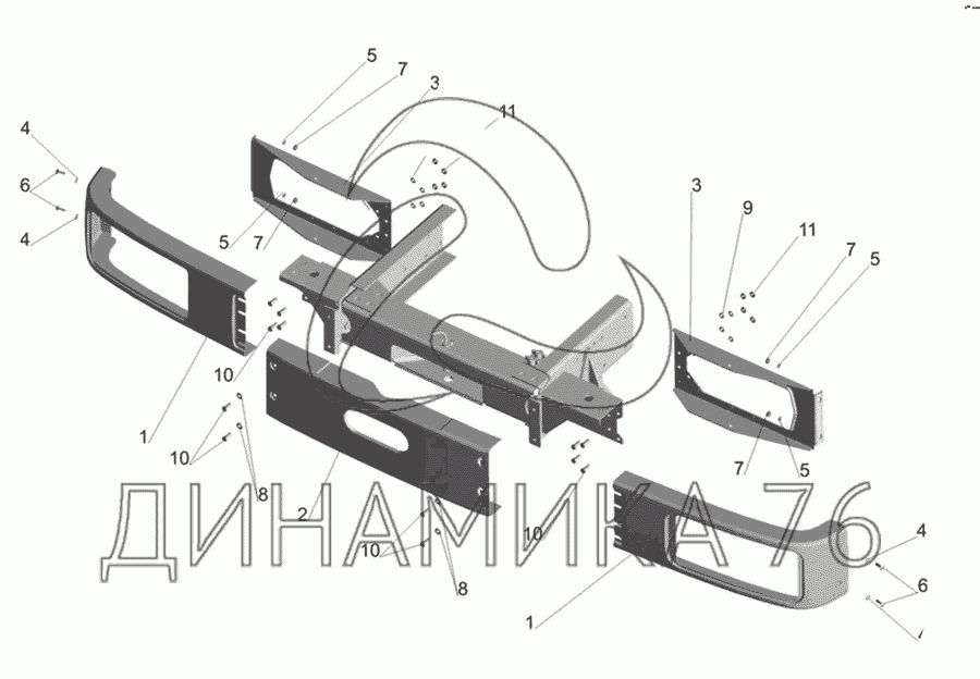 Перечень комплектующих от Крепление бампера на МАЗ-437030 (Зубренок)
