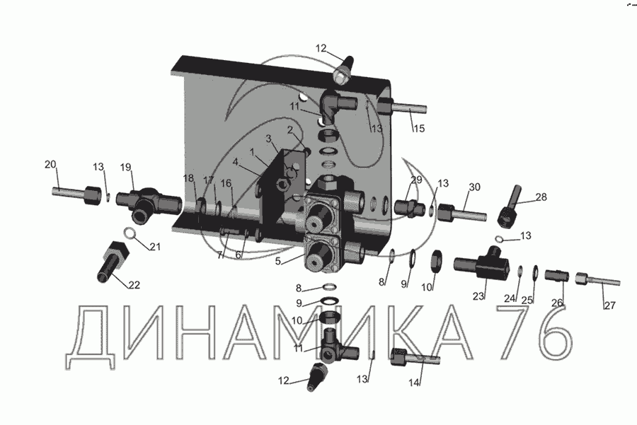 Перечень комплектующих от Крепление четырехконтурного клапана на МАЗ-437030 (Зубренок)
