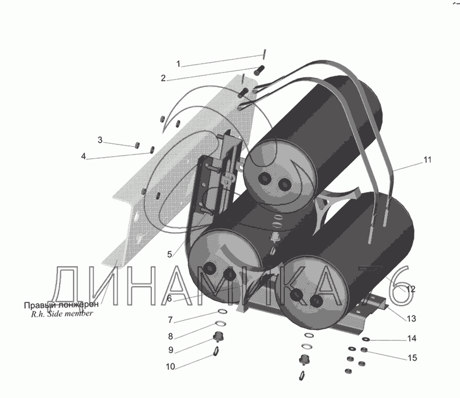 Перечень комплектующих от Крепление ресиверов на МАЗ-437030 (Зубренок)