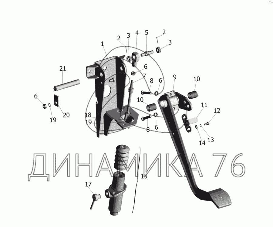 Перечень комплектующих от Основание педали 64226-1602004 на МАЗ-437030 (Зубренок)