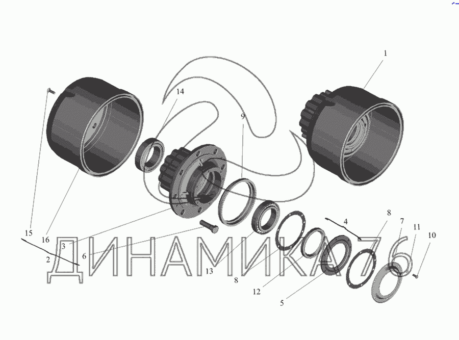 Перечень комплектующих от Ступица моста на МАЗ-437030 (Зубренок)