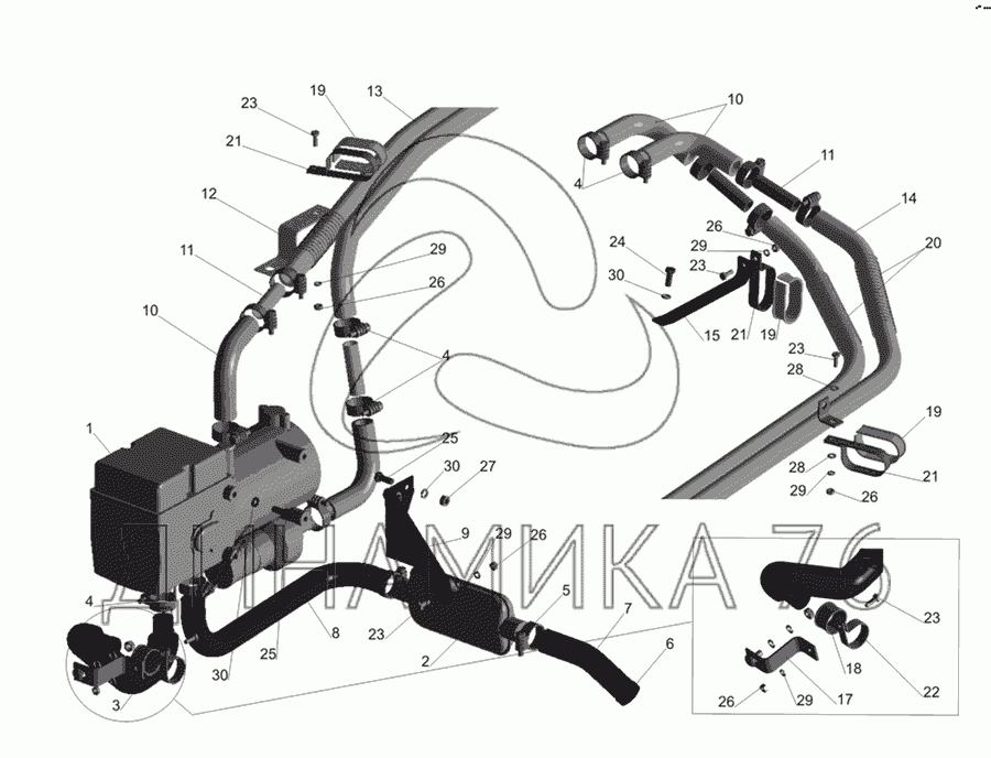 Установка подогревателя 437030-1015001 — МАЗ-437030 (Зубренок):