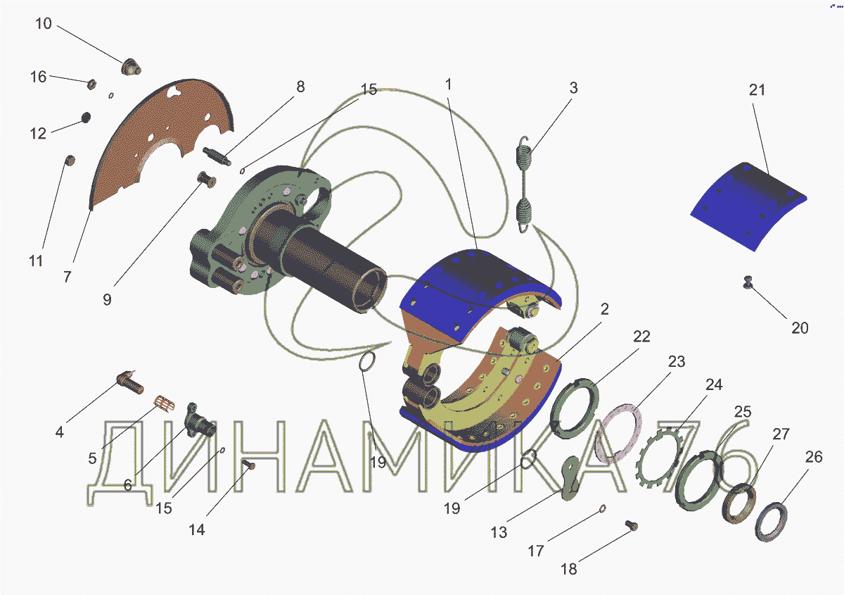 Перечень комплектующих от Тормоз заднего колеса на МАЗ-437040 (Зубренок)