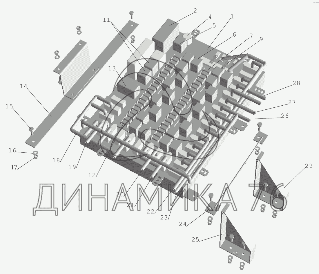 Перечень комплектующих от Установка блока коммутационной аппаратуры на МАЗ-437040 (Зубренок)