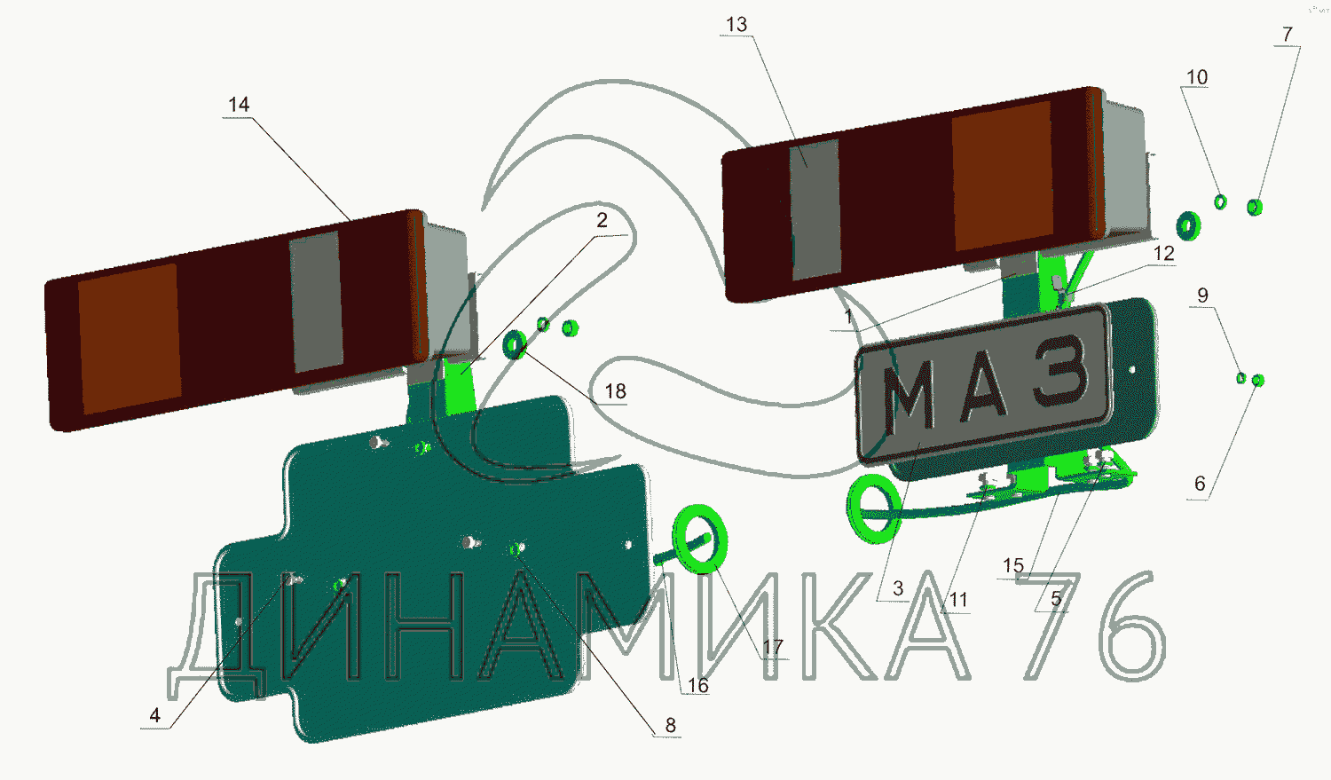 Перечень комплектующих от Установка задних фонарей на МАЗ-437040 (Зубренок)