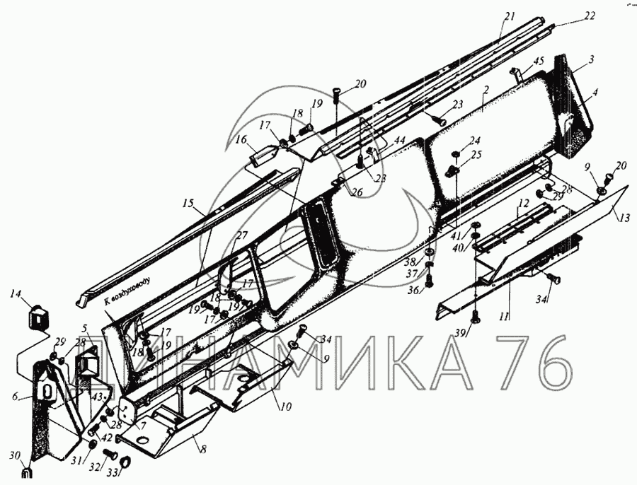 Перечень комплектующих от Панель приборов на МАЗ-437040 (Зубренок)