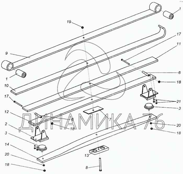 Перечень комплектующих от Рессора задняя на МАЗ-437040 (Зубренок)