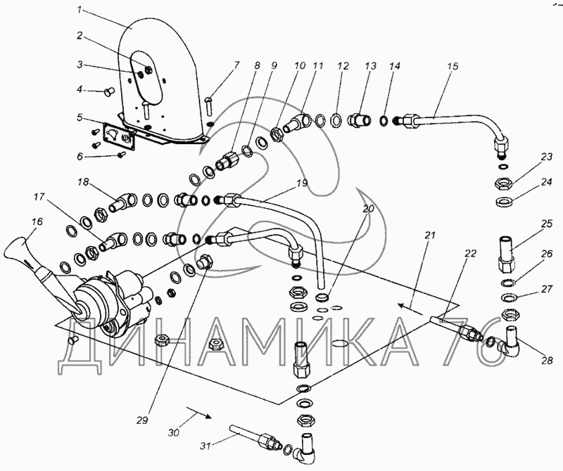 Перечень комплектующих от Управление стояночным тормозом на МАЗ-437040 (Зубренок)