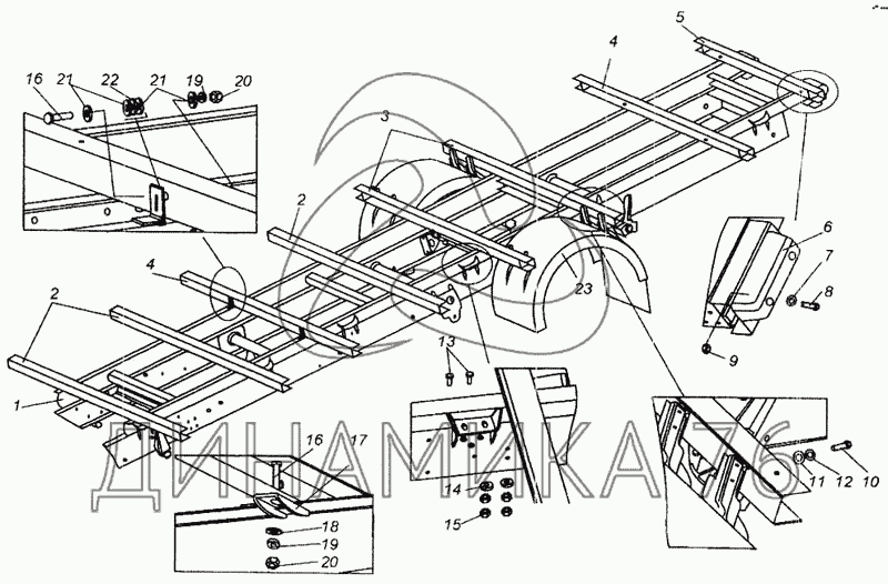 Установка основания и брызговиков — МАЗ-437040 (Зубренок):
